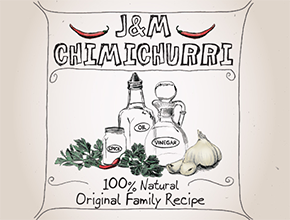 We designed Ceibo Foods corporate logo and illustrated and designed their first product, J&M's Chimichurri's logo and labels.